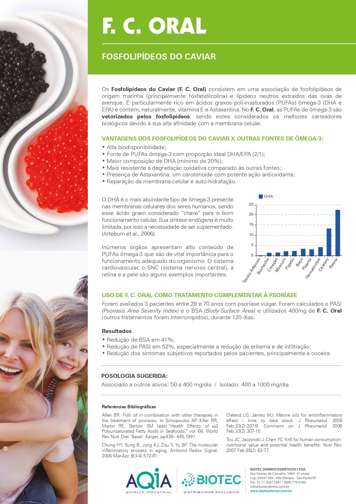Nos Fosfolipídeos do Caviar (F. C. Oral), os PUFAS ômega-3 estão incorporados aos fosfolipídeos, considerados os melhores carreadores biológicos devido ao alto conteúdo desses componentes nas membranas celulares.