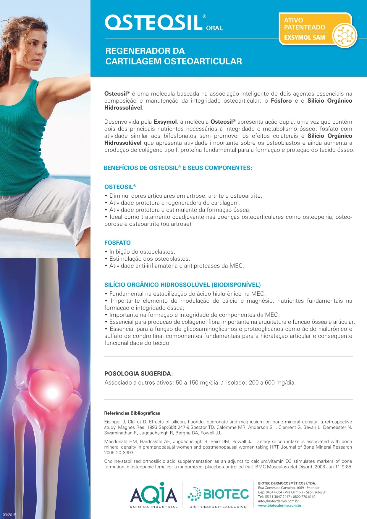 Osteosil é uma molécula baseada na associação inteligente de dois agentes essenciais na composição e manutenção da integridade osteoarticular; o Fósforo e o Silício Orgânico Hidrossolúvel.